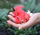 Yet not all exotic things are likely to eat you. Besides stunning birds there are amazing flowers. Here Reema shows off some flowers from her family’s garden. -
